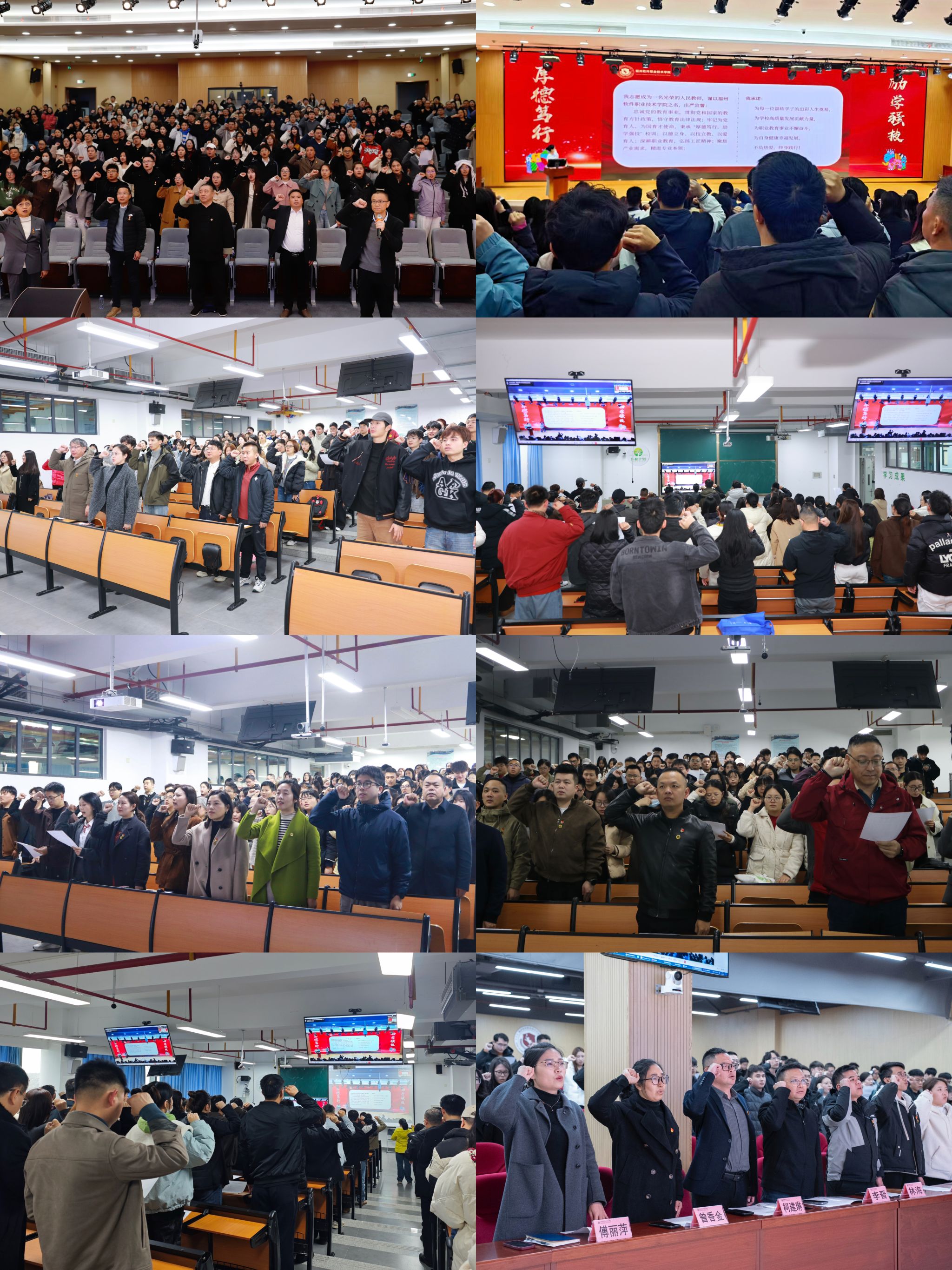 下一步,学校全体教职工将以此次宣誓为新起点,把誓言精神内化于心、外化于行,将初心使命融入教育教学、人才培养、科研创新的全过程。全体教职工将坚持以德立身、以技立教、以爱育人,紧扣数字产业发展需求精进专业本领,深耕职业教育沃土,用心呵护每一位学子成长,以扎实的工作作风、精湛的育人能力为福软学子成长成才保驾护航,为学校高质量内涵式发展注入强劲动力,为新时代职业教育事业高质量发展不懈奋斗。